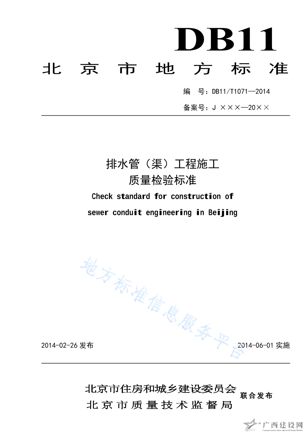 DB11 1071-2014排水管(渠)工程施工質(zhì)量檢驗(yàn)標(biāo)準(zhǔn)