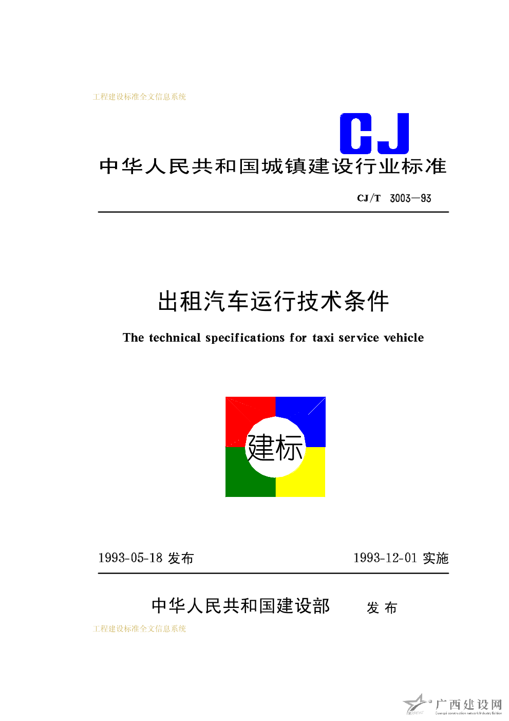出租汽車運(yùn)行技術(shù)條件 CJ/T3003-93
