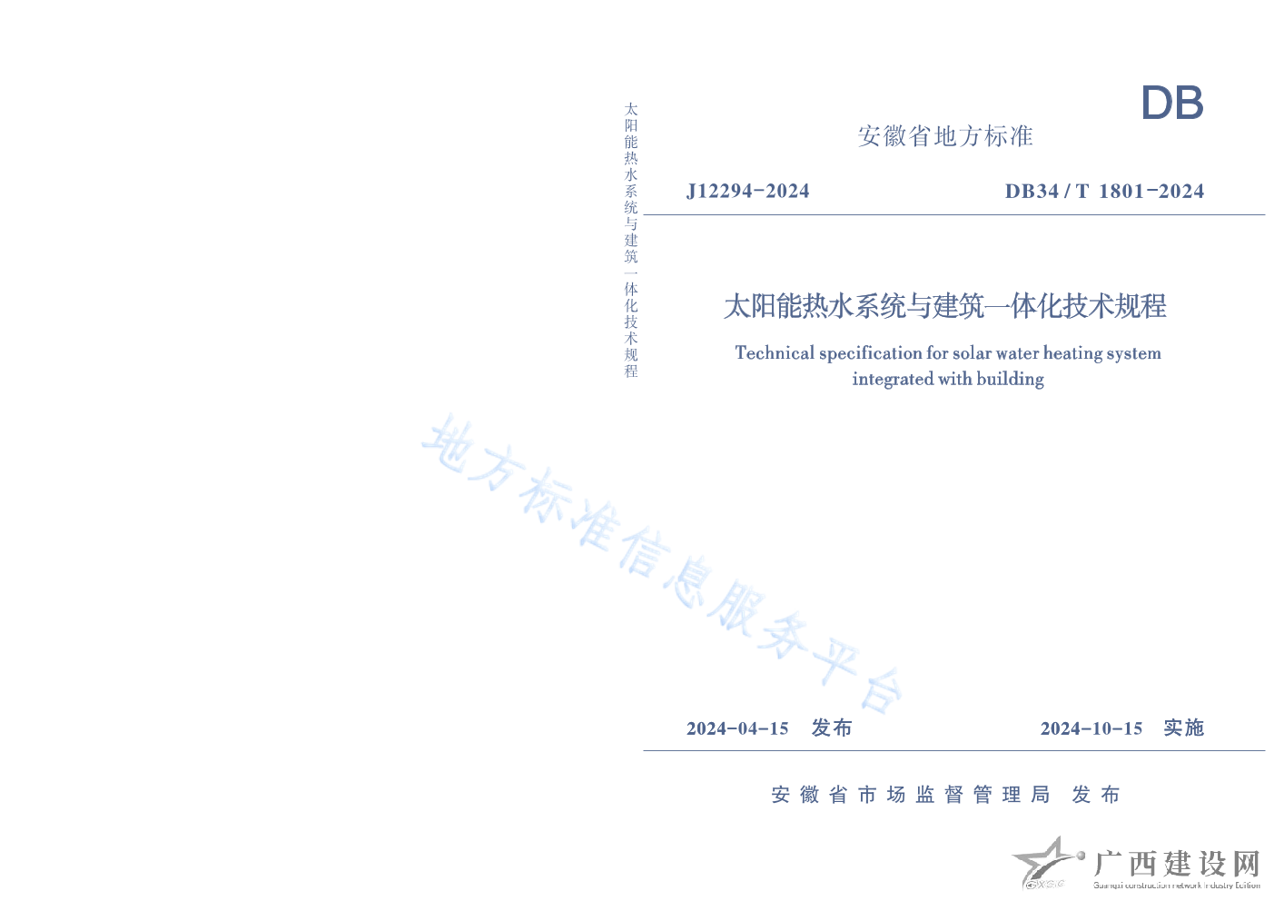 DB34T 1801-2024太陽能熱水系統與建筑一體化技術規程