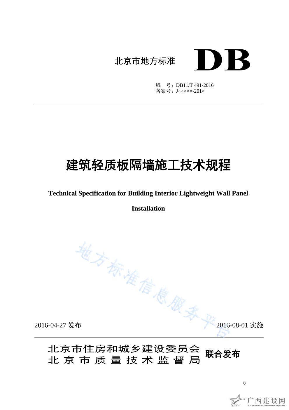 DB11 T_491-2016建筑輕質(zhì)板隔墻施工技術規(guī)程