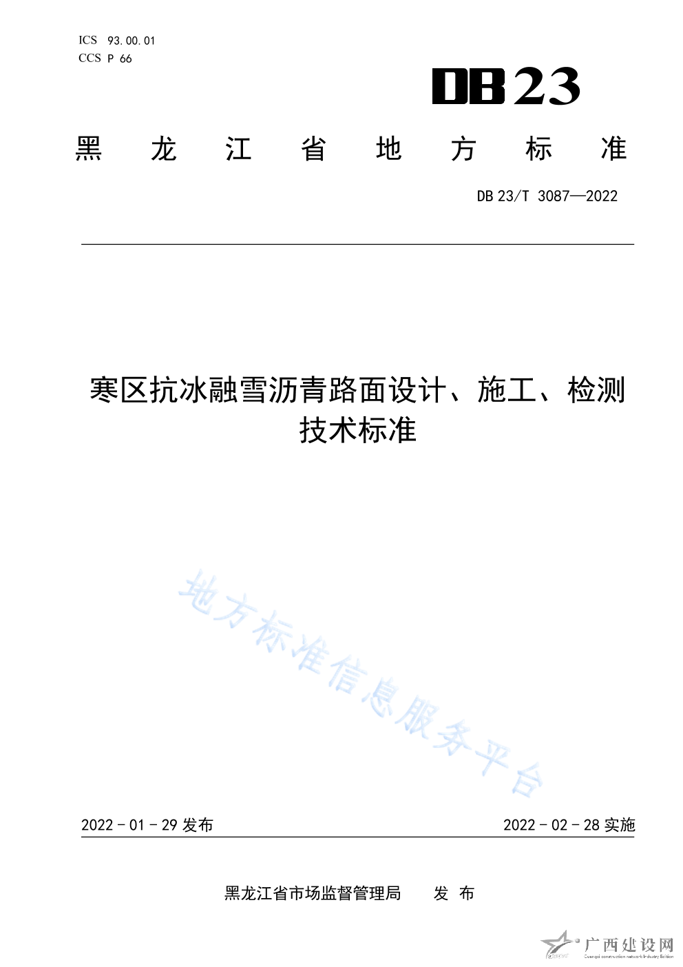 DB23 T 3087—2022寒區(qū)抗冰融雪瀝青路面設(shè)計(jì)、施工、檢測(cè)技術(shù)標(biāo)準(zhǔn)