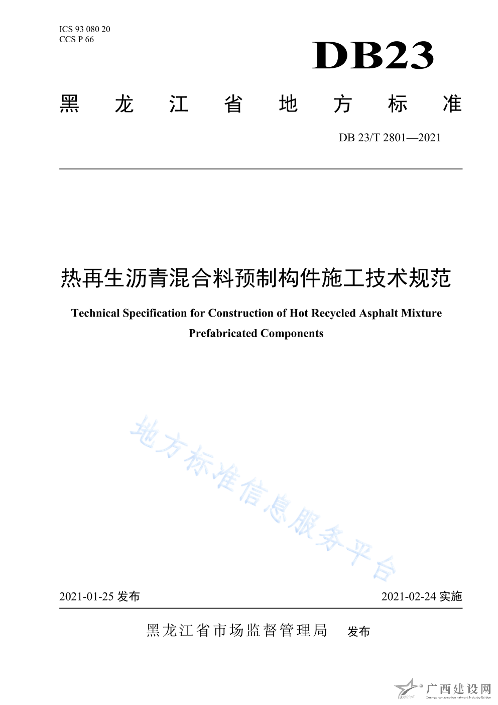 DB23 T 2801—2021熱再生瀝青混合料預(yù)制構(gòu)件施工技術(shù)規(guī)范