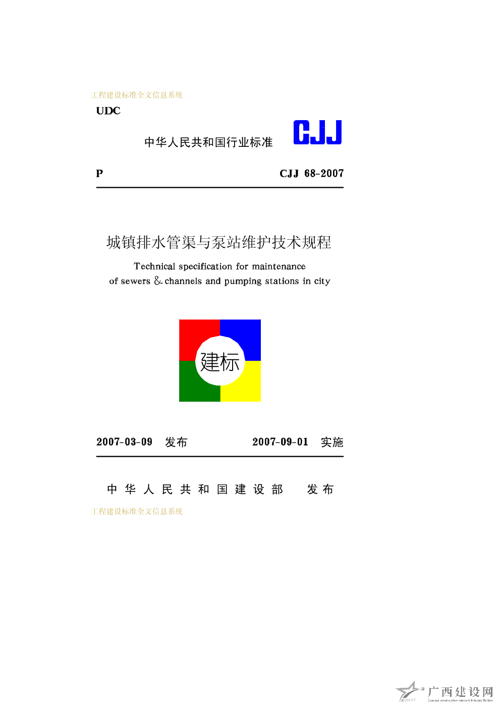 CJJ 68-2016 城鎮排水管渠與泵站運行、維護及安全技術規程