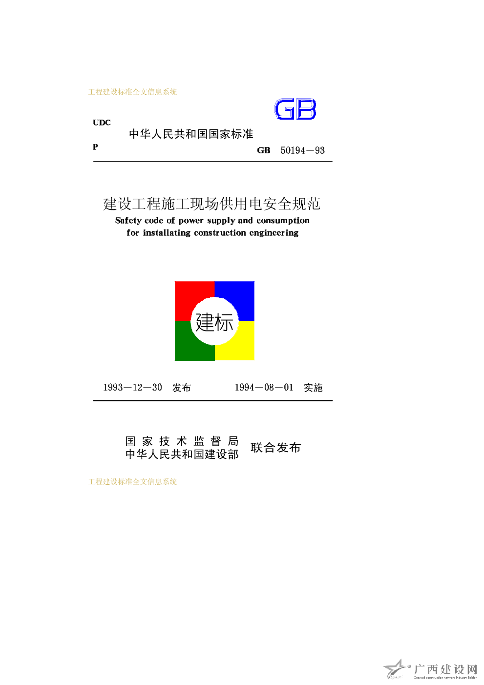 建設工程施工現場供用電安全規范 GB50194-93