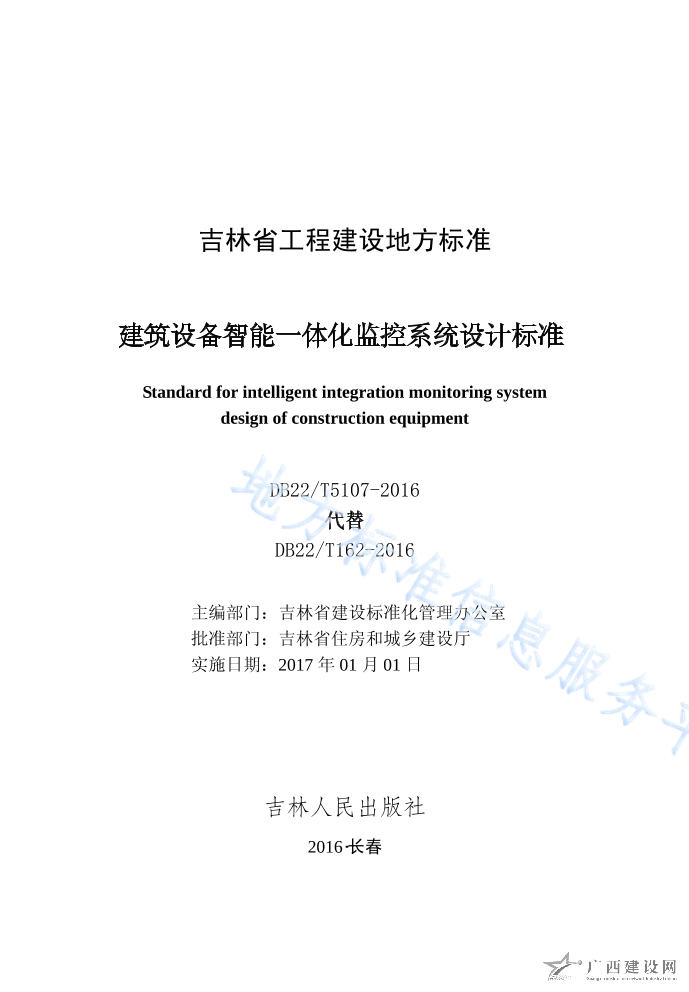 DB22T5107-2016建筑設備智能一體化監控系統設計標準