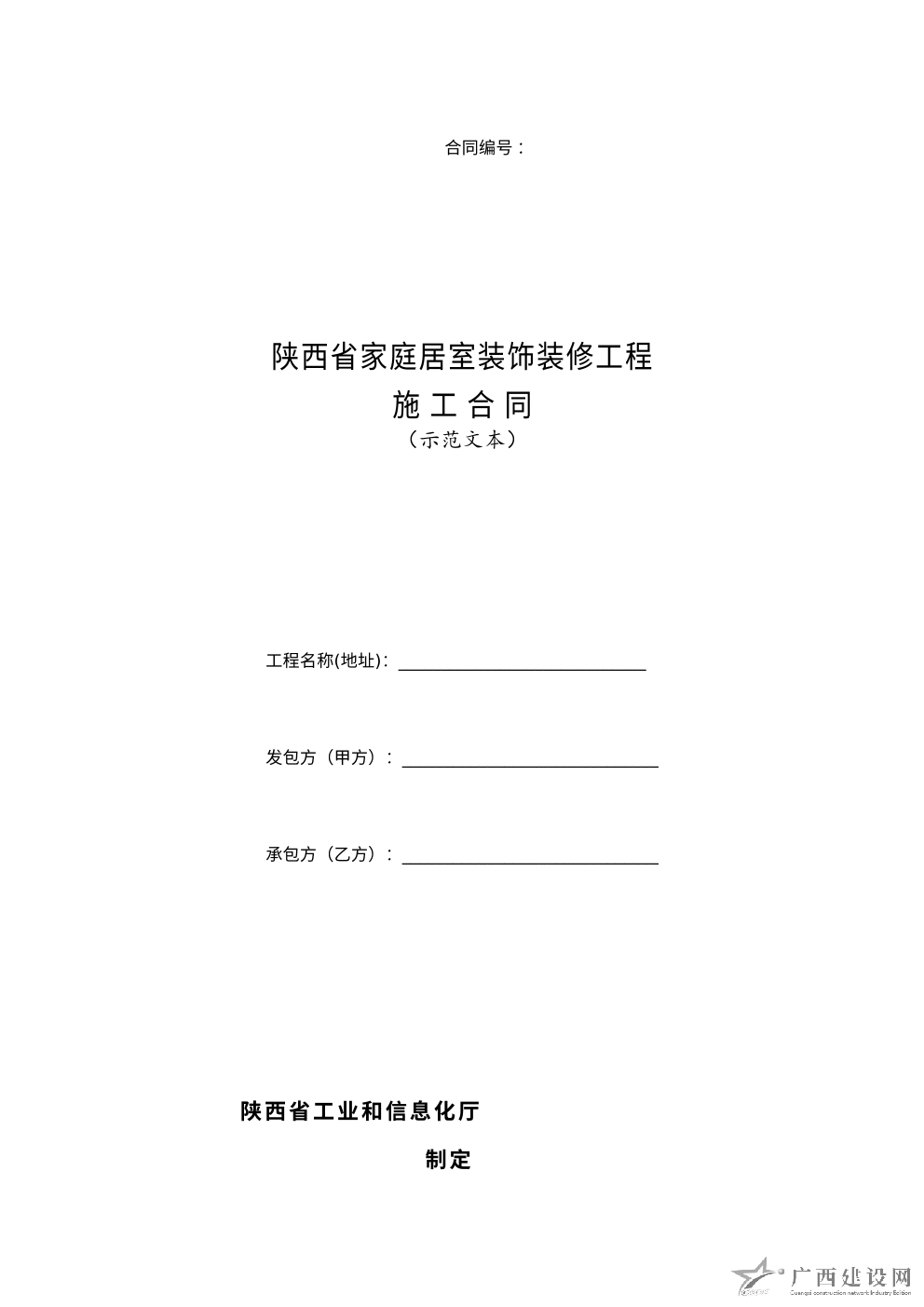 陜西省家庭居室裝飾裝修工程施工合同(示范文本)