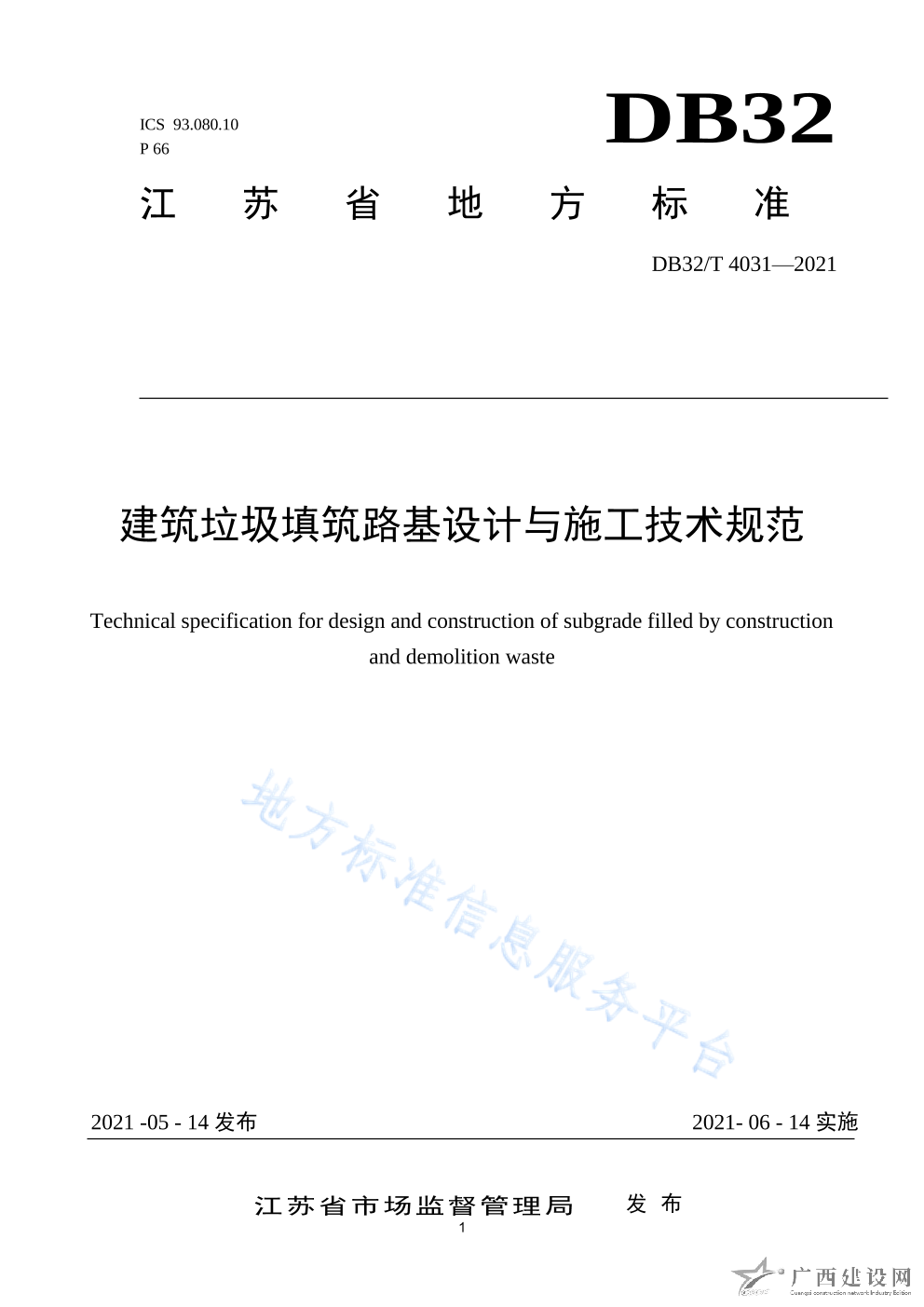 DB32 T4031-2021建筑垃圾填筑路基設(shè)計(jì)與施工技術(shù)規(guī)范