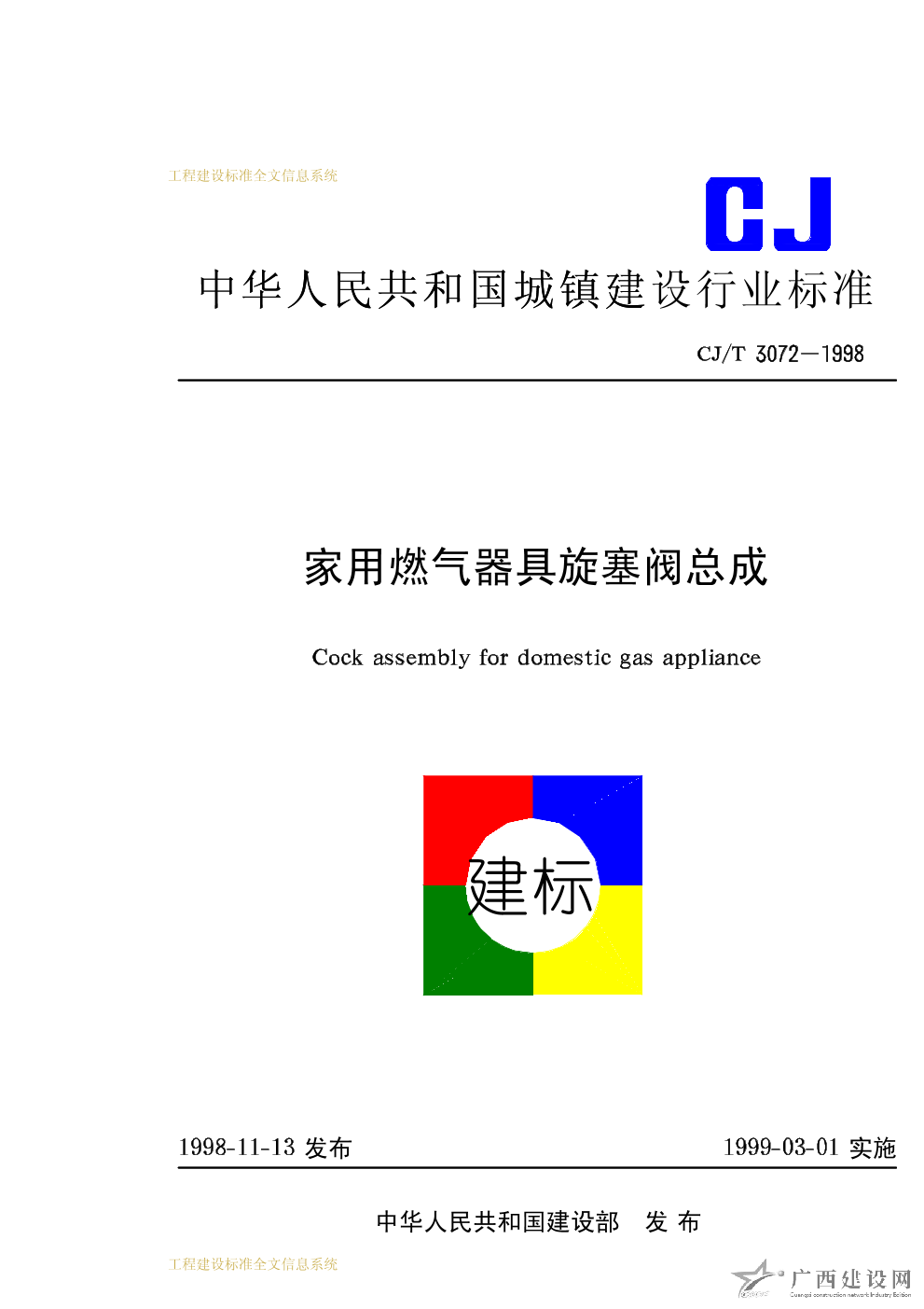 家用燃氣器具旋塞閥總成 CJ/T3072-1998
