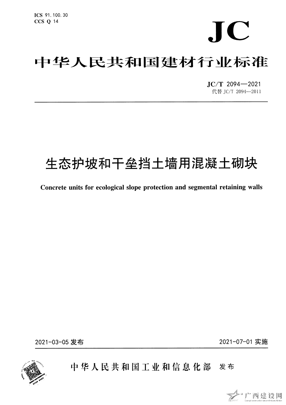 JC T2544-2019 中空墻體用混凝土磚和砌塊