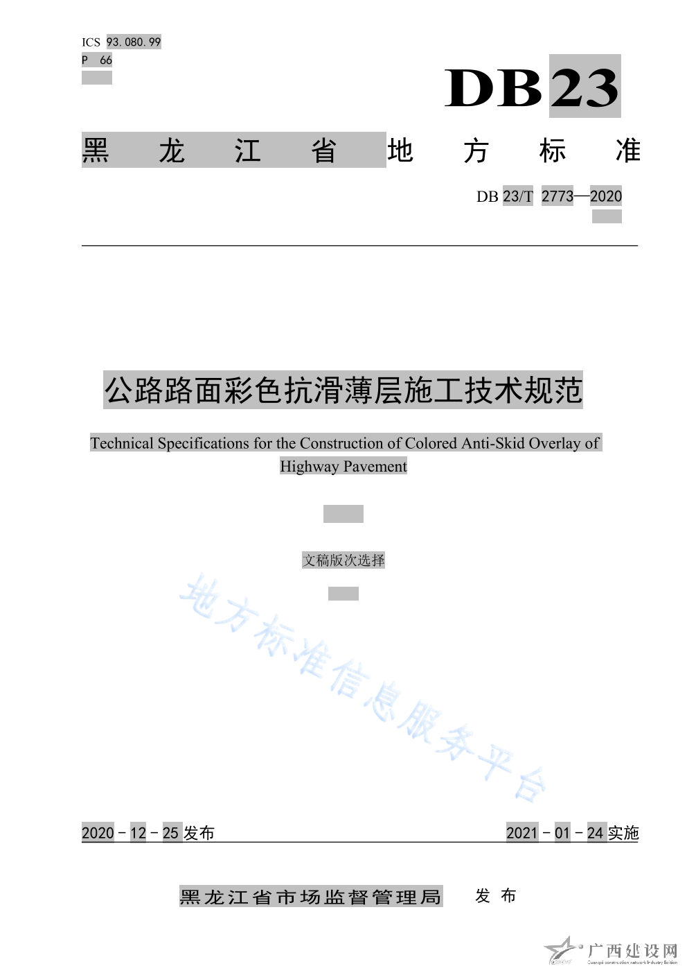 DB23 T 2773—2020公路路面彩色抗滑薄層施工技術(shù)規(guī)范
