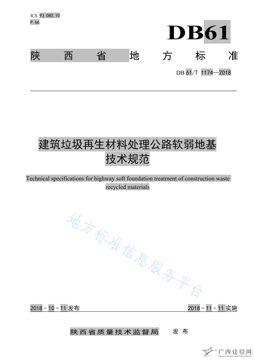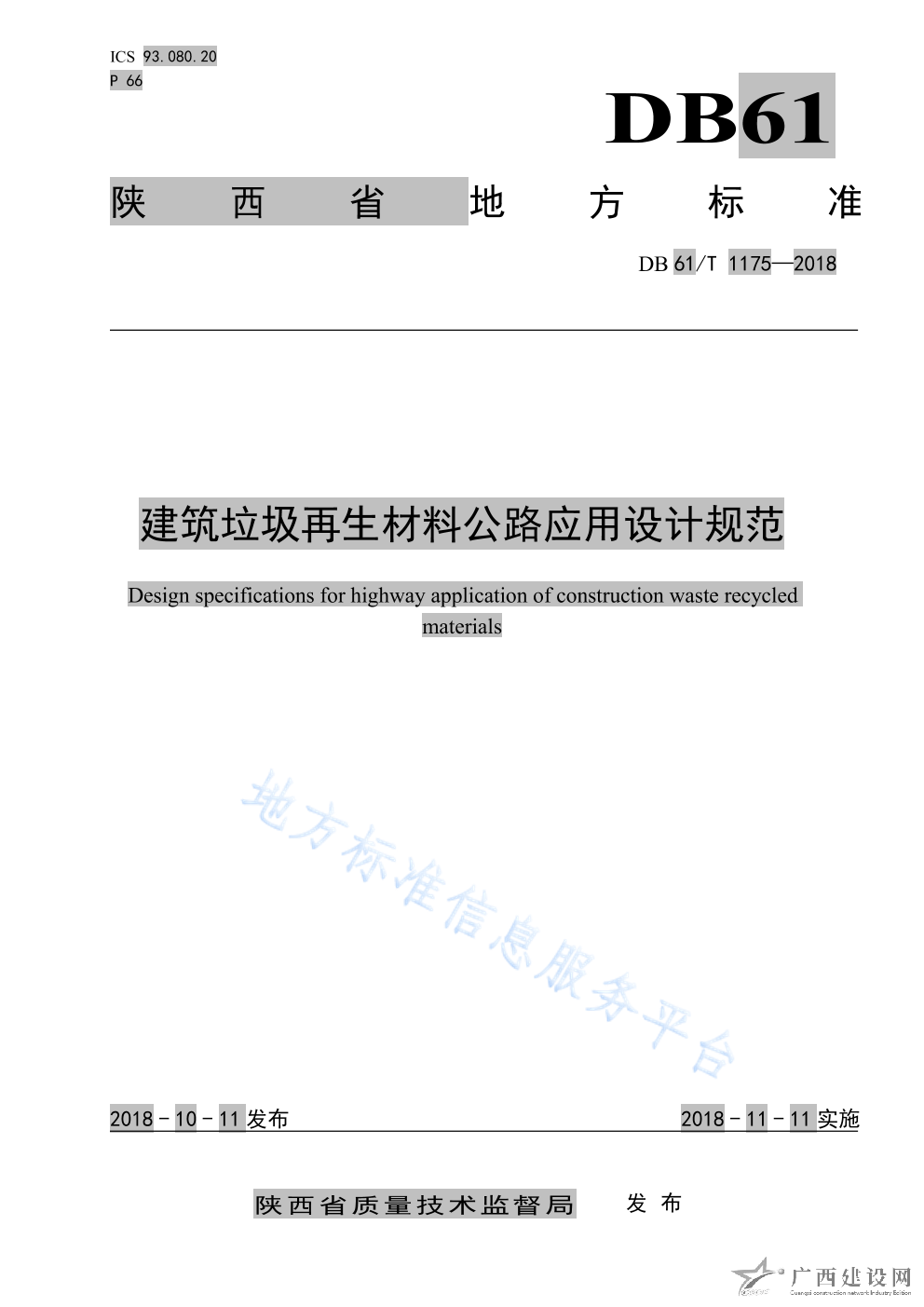 DB61 T1160-2018道路用建筑垃圾再生材料加工技術規范
