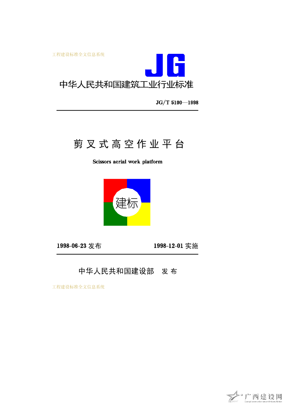 高空作業機械安全規則 JG5099—1998