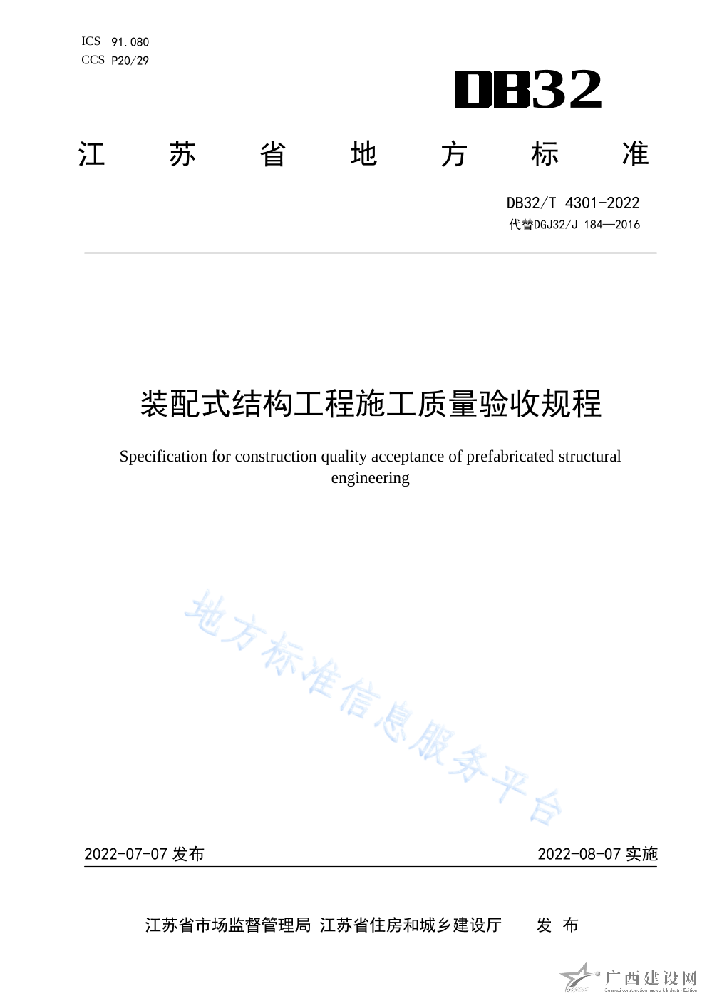 DB32 T3915-2020裝配式混凝土結構現場連接施工與質量驗收規程