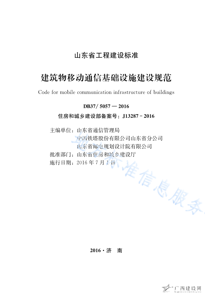 DB37 5057-2016建筑物移動(dòng)通信基礎(chǔ)設(shè)施建設(shè)規(guī)范
