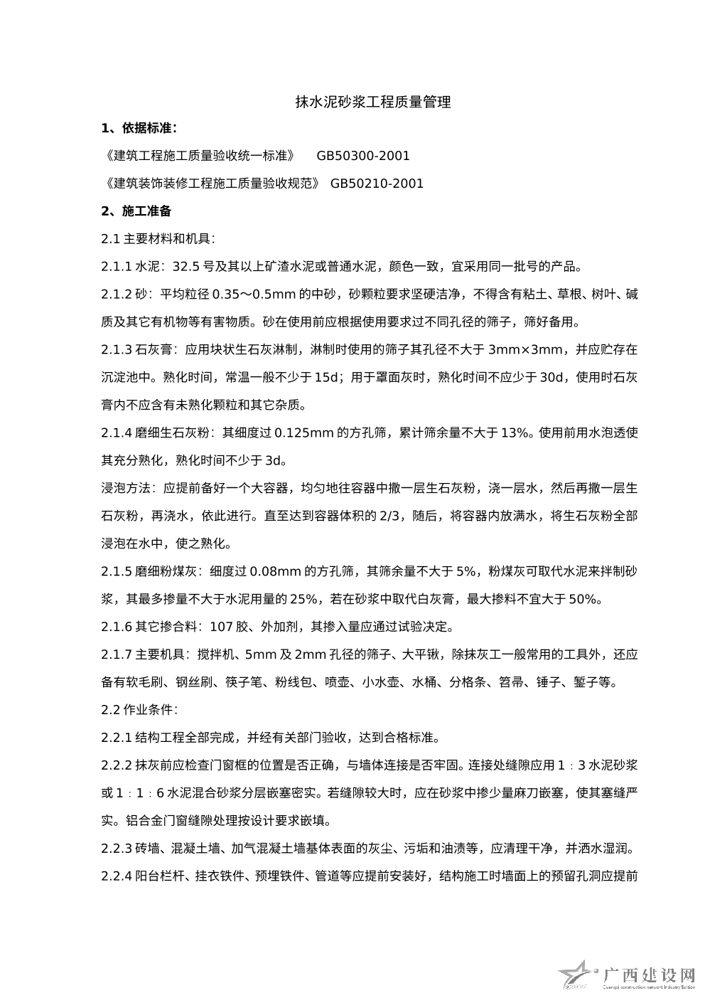 內墻抹石灰砂漿