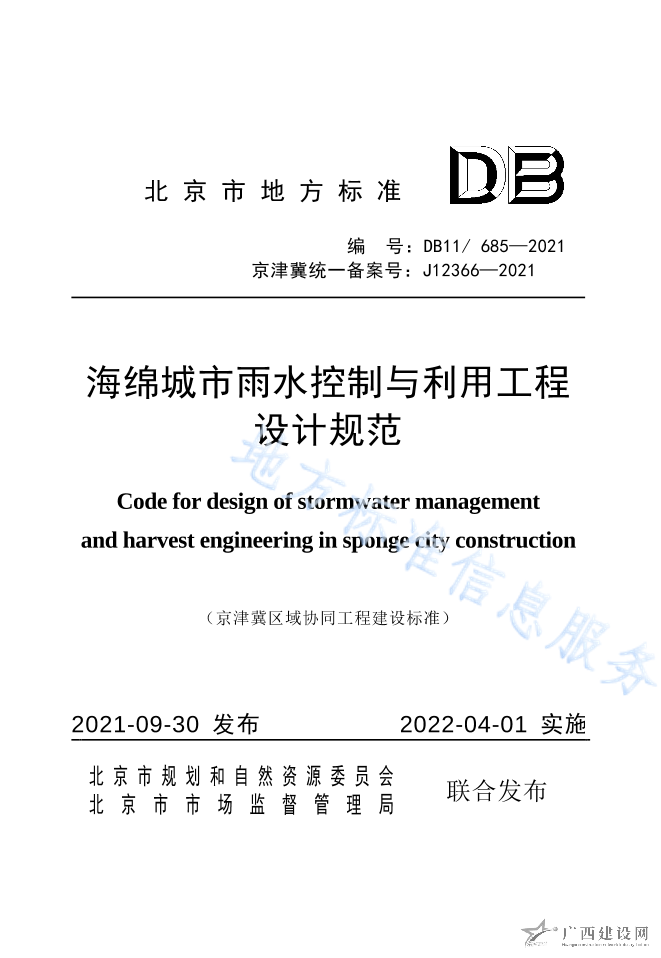 DB11 685-2021海綿城市雨水控制與利用工程設計規范
