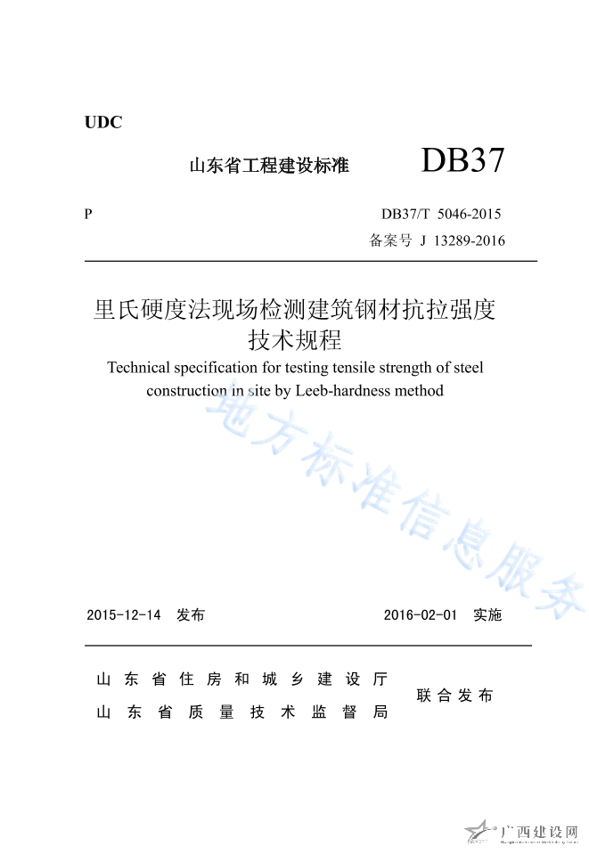 DB37 T5169-2020印痕法檢測建筑鋼材強度技術規程