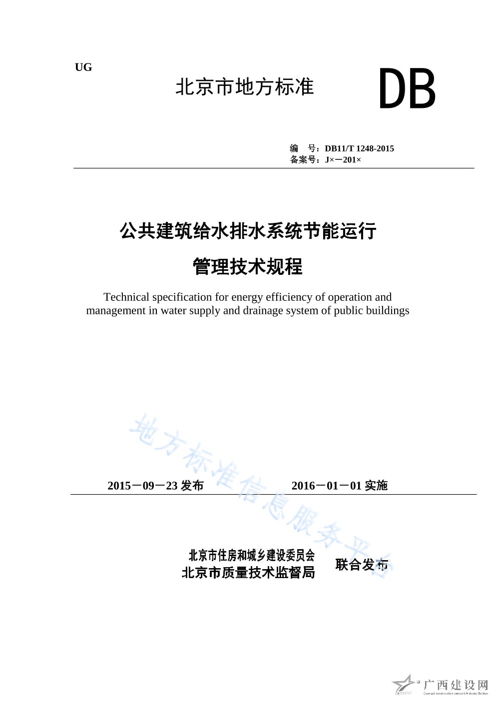 DB11 T_1248-2015公共建筑給水排水系統(tǒng)節(jié)能運(yùn)行管理技術(shù)規(guī)程