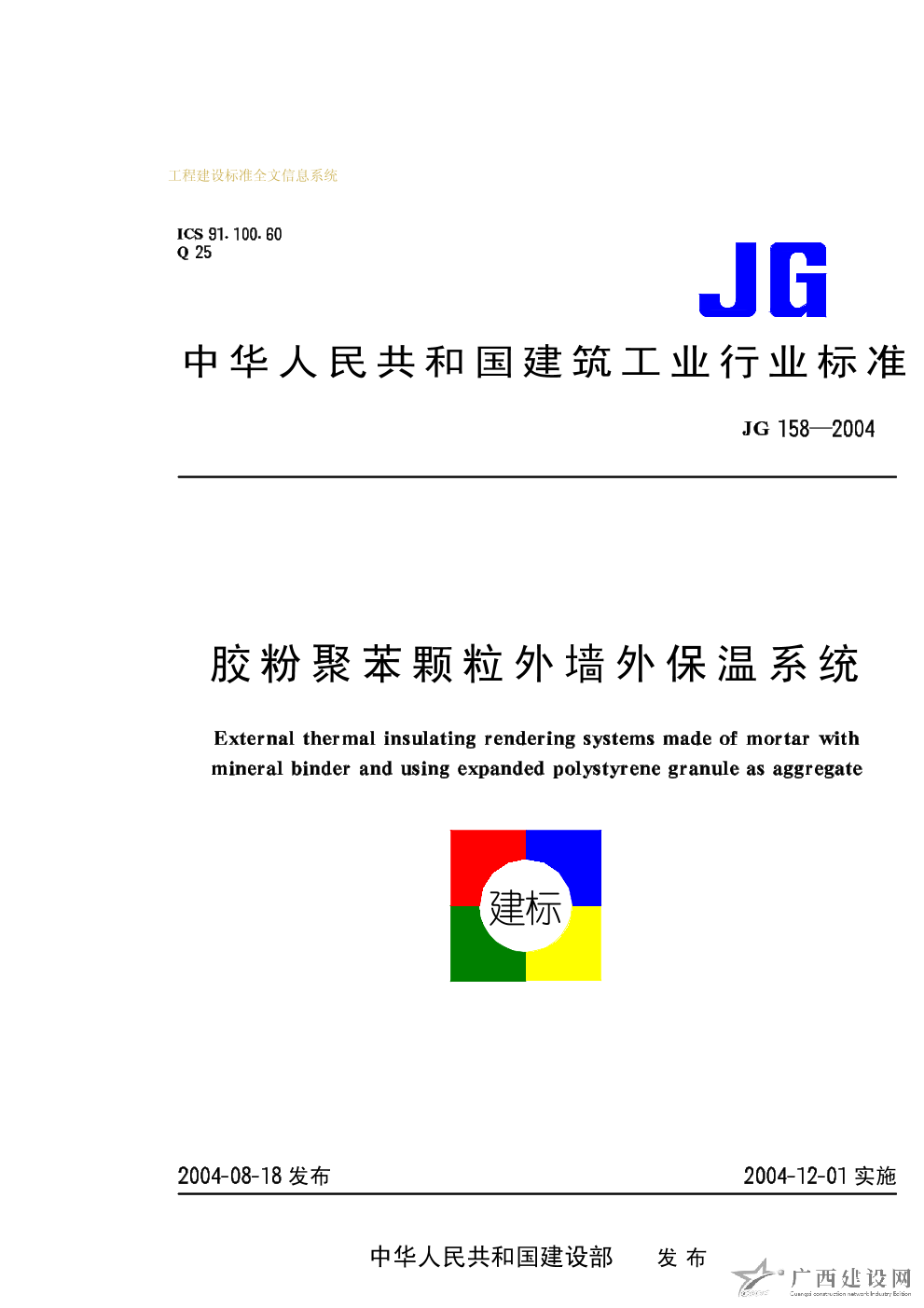膠粉聚苯顆粒外墻外保溫系統(tǒng) JG158-2004