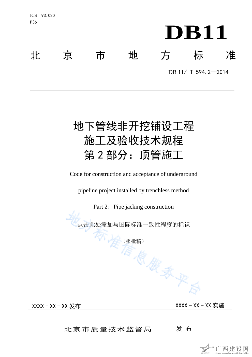 DB11 T_594.1-2017地下管線非開挖鋪設工程施工及驗收技術規程第1部分:水平定向鉆施工