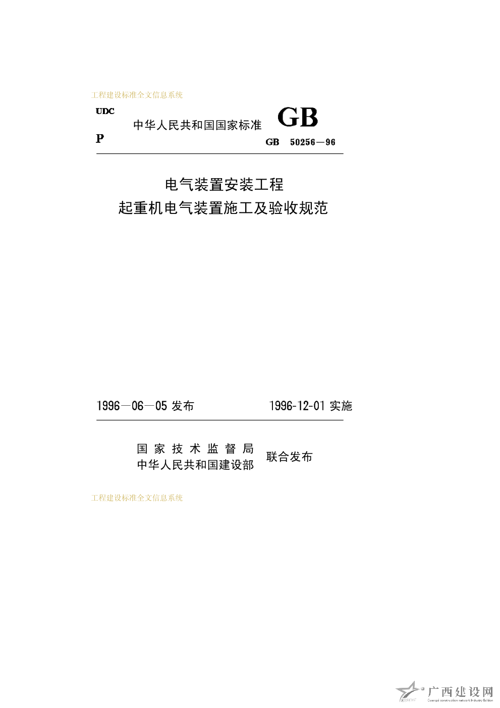 電氣裝置安裝工程起重機電氣裝置施工及驗收規范 GB50256-96