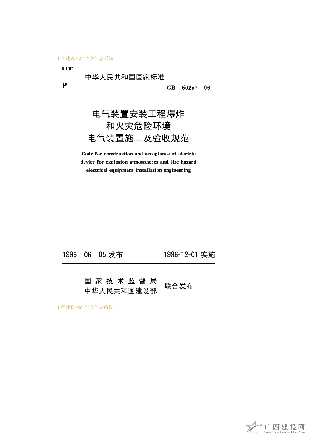 電氣裝置安裝工程爆炸和火災危險環境電氣裝置施工及驗收規范 GB50257-96