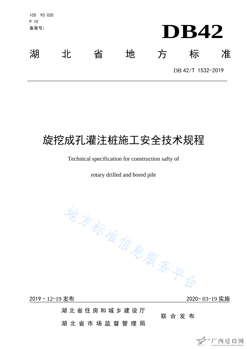 DB42T 831-2012鉆孔灌注樁施工技術規程