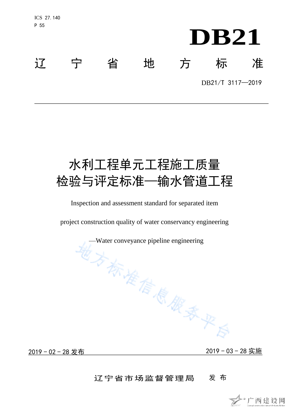 DB21 T3117-2019水利工程單元工程施工質量檢驗與評定標準—輸水管道工程