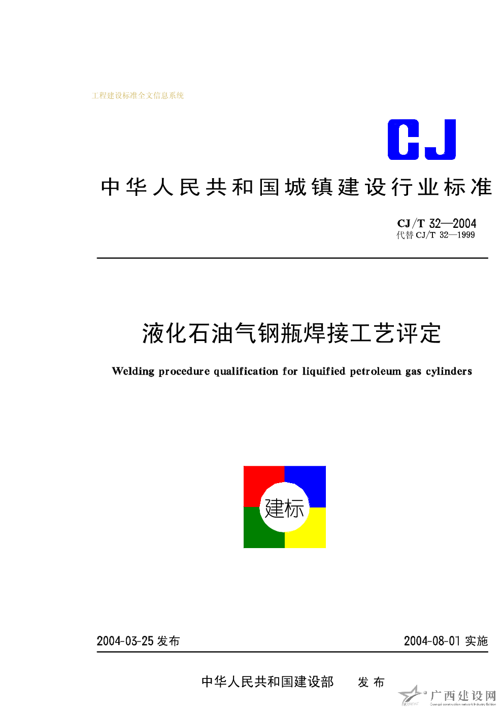 液化石油氣鋼瓶焊接工藝評(píng)定 CJ/T32-2004