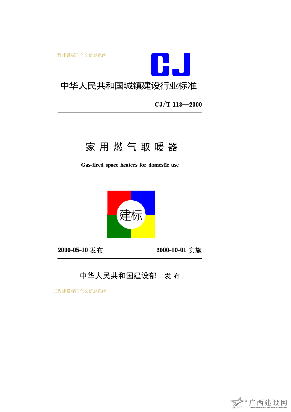家用燃?xì)馊∨? CJ/T113—2000