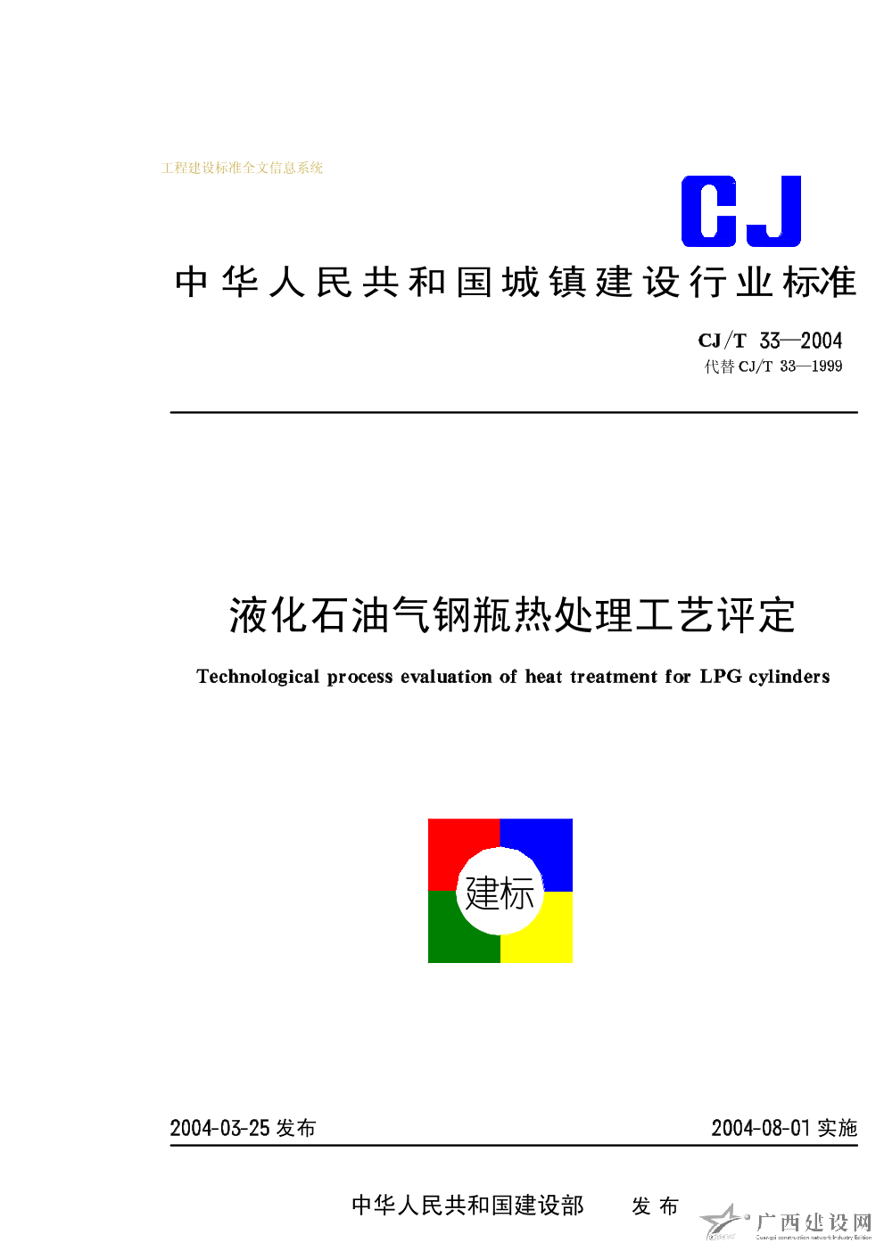 液化石油氣鋼瓶熱處理工藝評(píng)定 CJ/T33-2004
