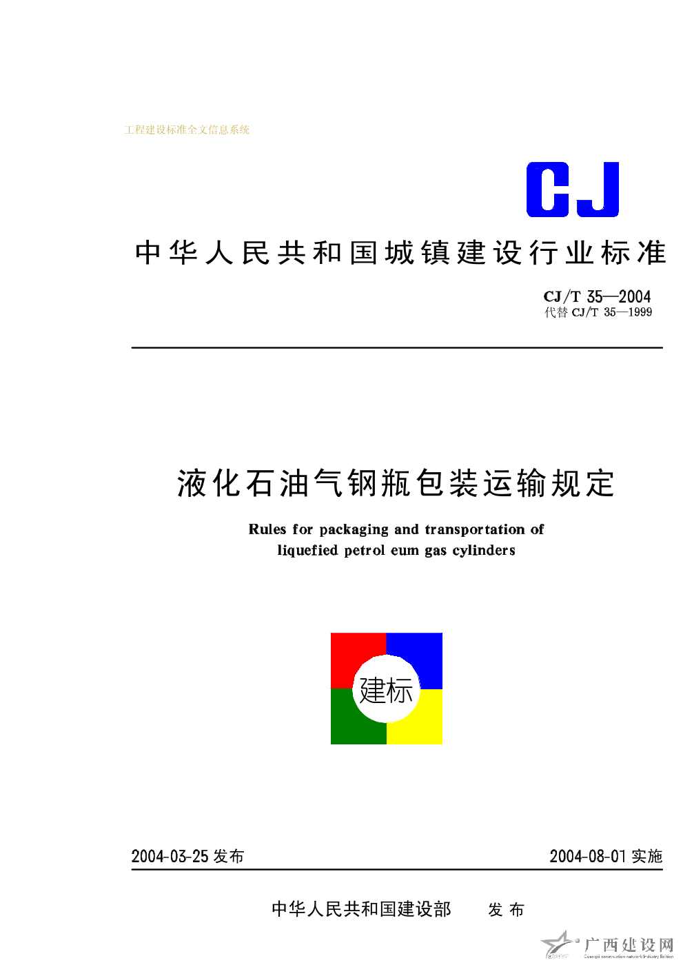 液化石油氣鋼瓶包裝運(yùn)輸規(guī)定 CJ/T35-2004