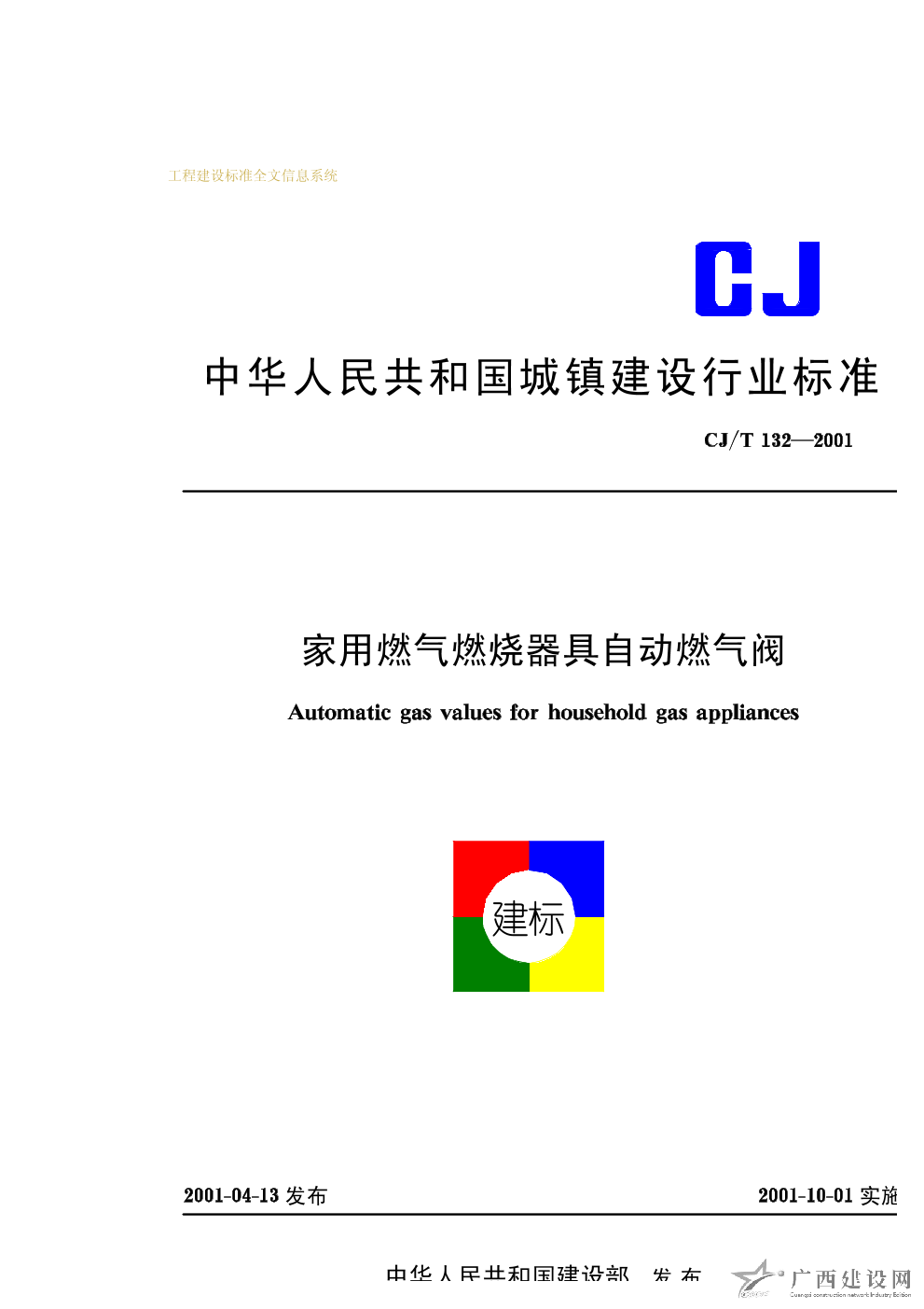 家用燃?xì)馊紵骶咦詣?dòng)燃?xì)忾y CJ/T132—2001