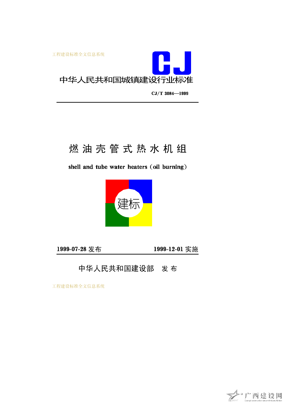 間接加熱式燃油燃氣中央熱水機組 CJ/T3086—1999