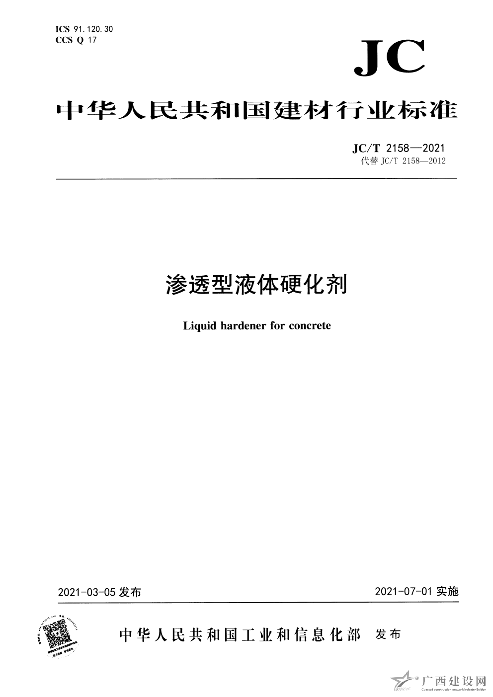 JC T 1018-2020 水性滲透型無機防水劑