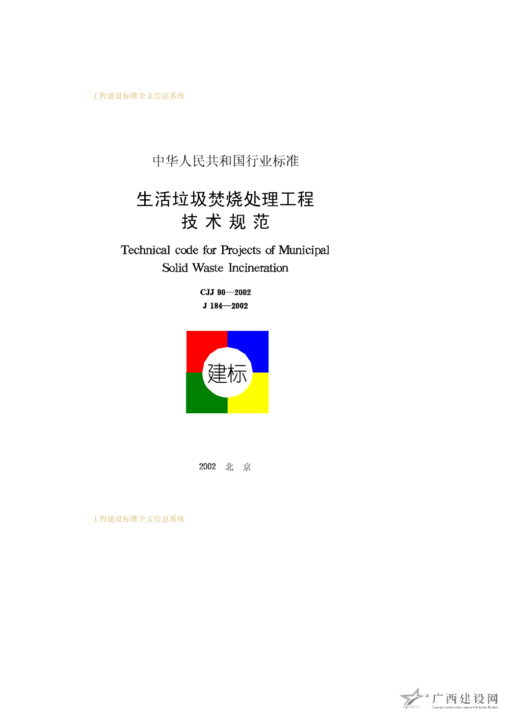 生活垃圾焚燒處理工程技術(shù)規(guī)范 CJJ90—2002