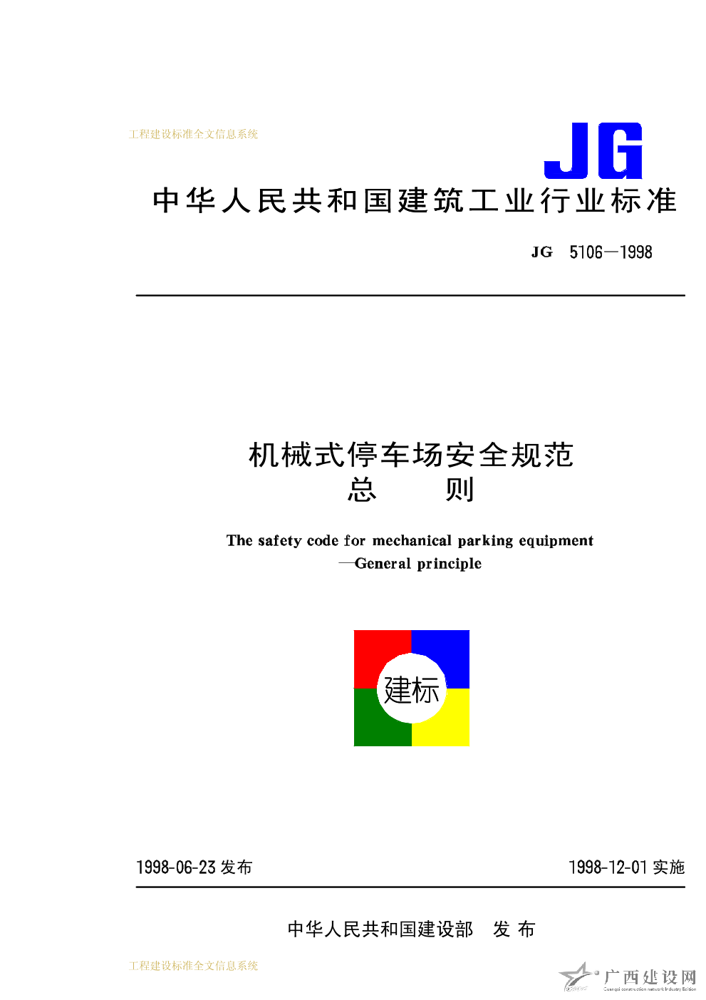 機械式停車場安全規(guī)范總則 JG5106-1998