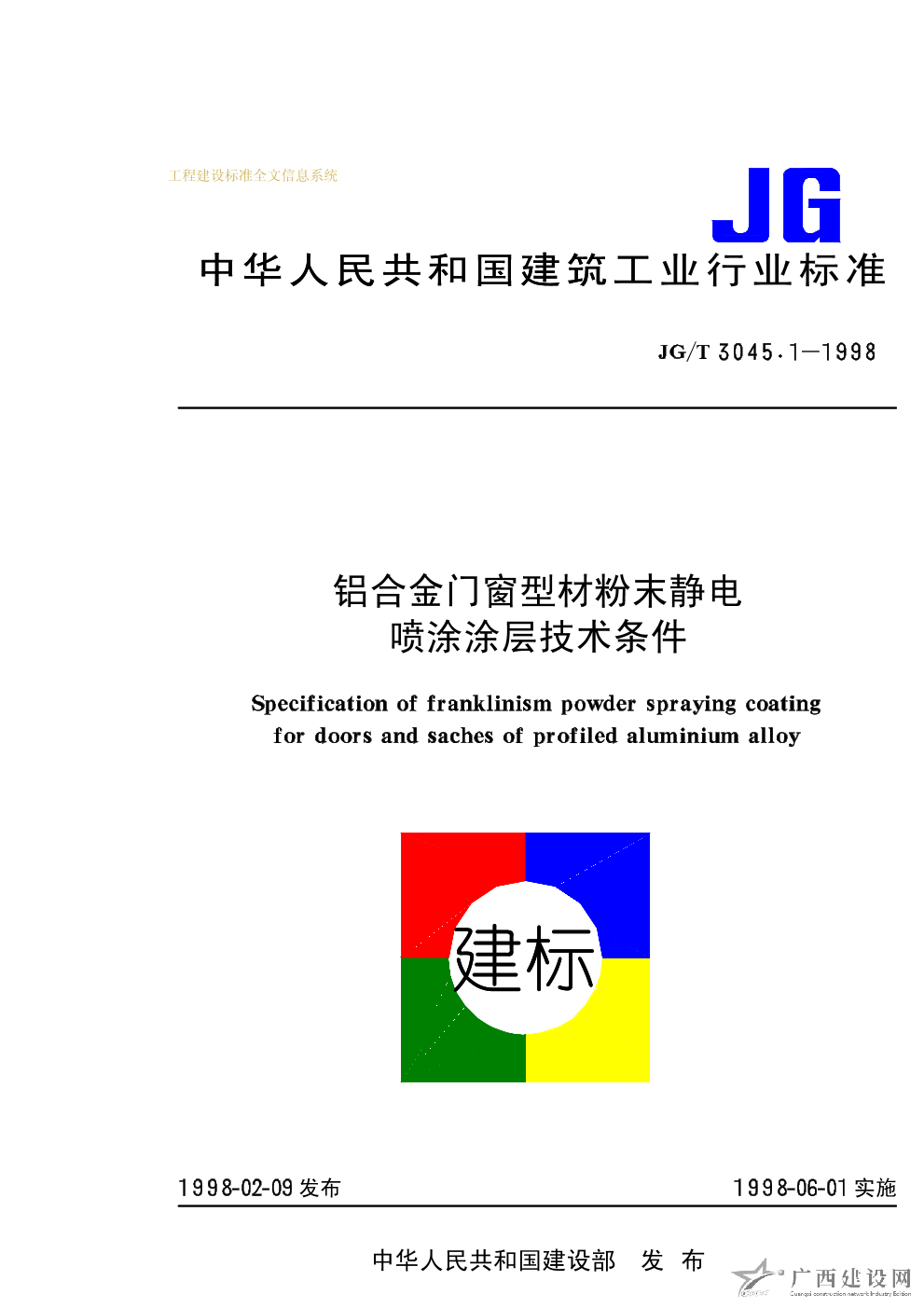 鋁合金門窗型材粉末靜電噴涂涂層技術條件 JG/T3045.1-1998