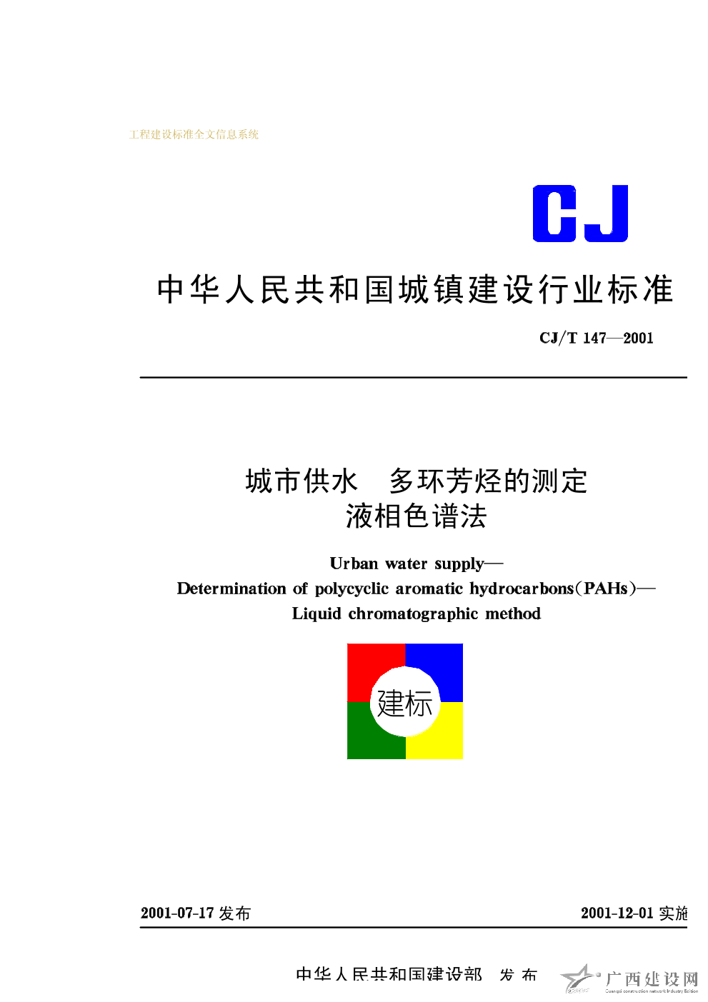 城市供水 多環芳烴的測定液相色譜法 CJ/T147—2001