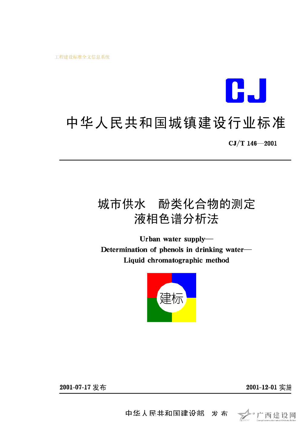 城市供水 酚類化合物的測定液相色譜分析法 CJ/T146—2001