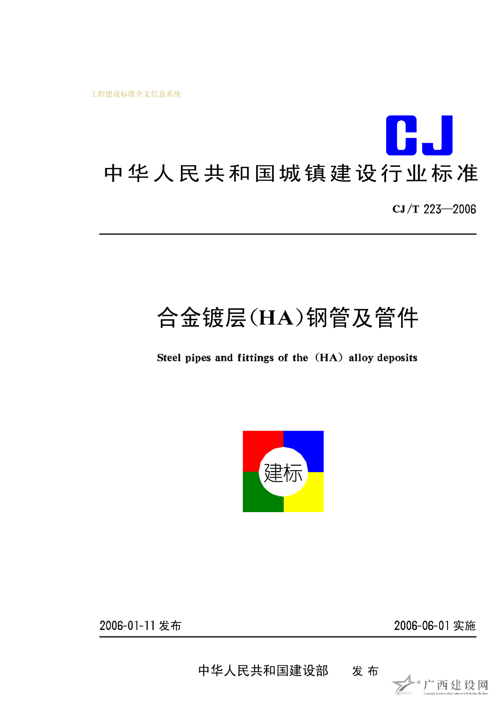合金鍍層(HA)鋼管及管件 CJ/T223-2006