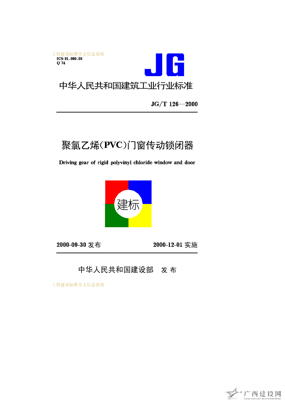 聚氯乙烯(PVC)門窗傳動鎖閉器 JG/T126—2000