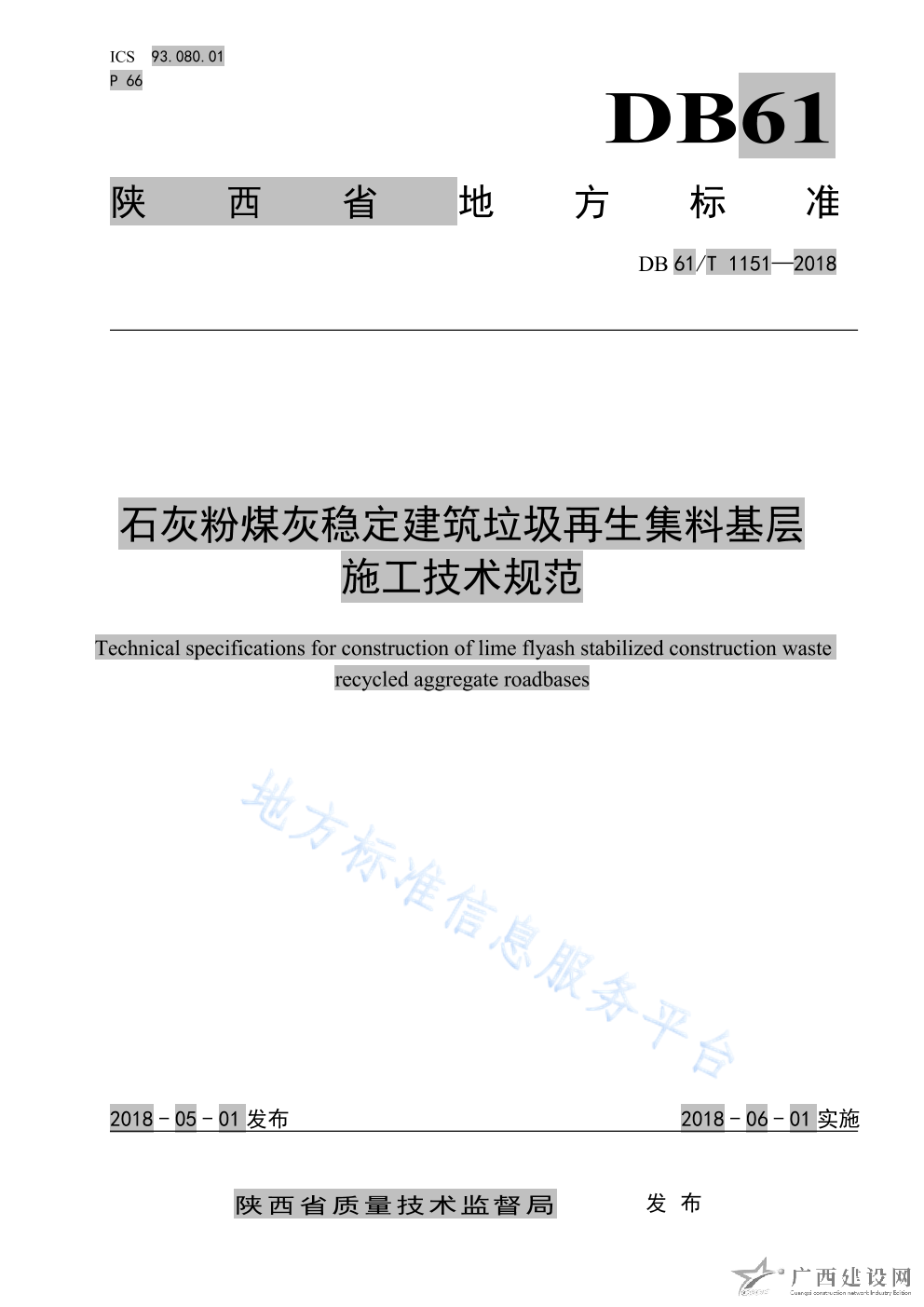 DB61 T1151-2018石灰粉煤灰穩(wěn)定建筑垃圾再生集料基層施工技術(shù)規(guī)范