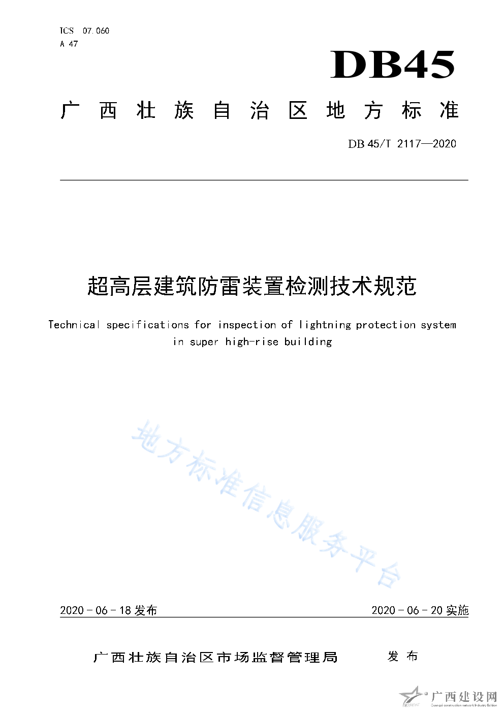 DB45T2117-2020超高層建筑防雷裝置檢測(cè)技術(shù)規(guī)范