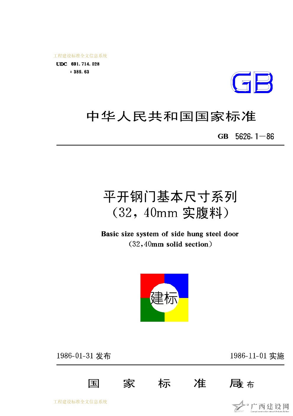 平開(kāi)鋼門基本尺寸系列(32,40mm實(shí)腹料) GB5626.1-86