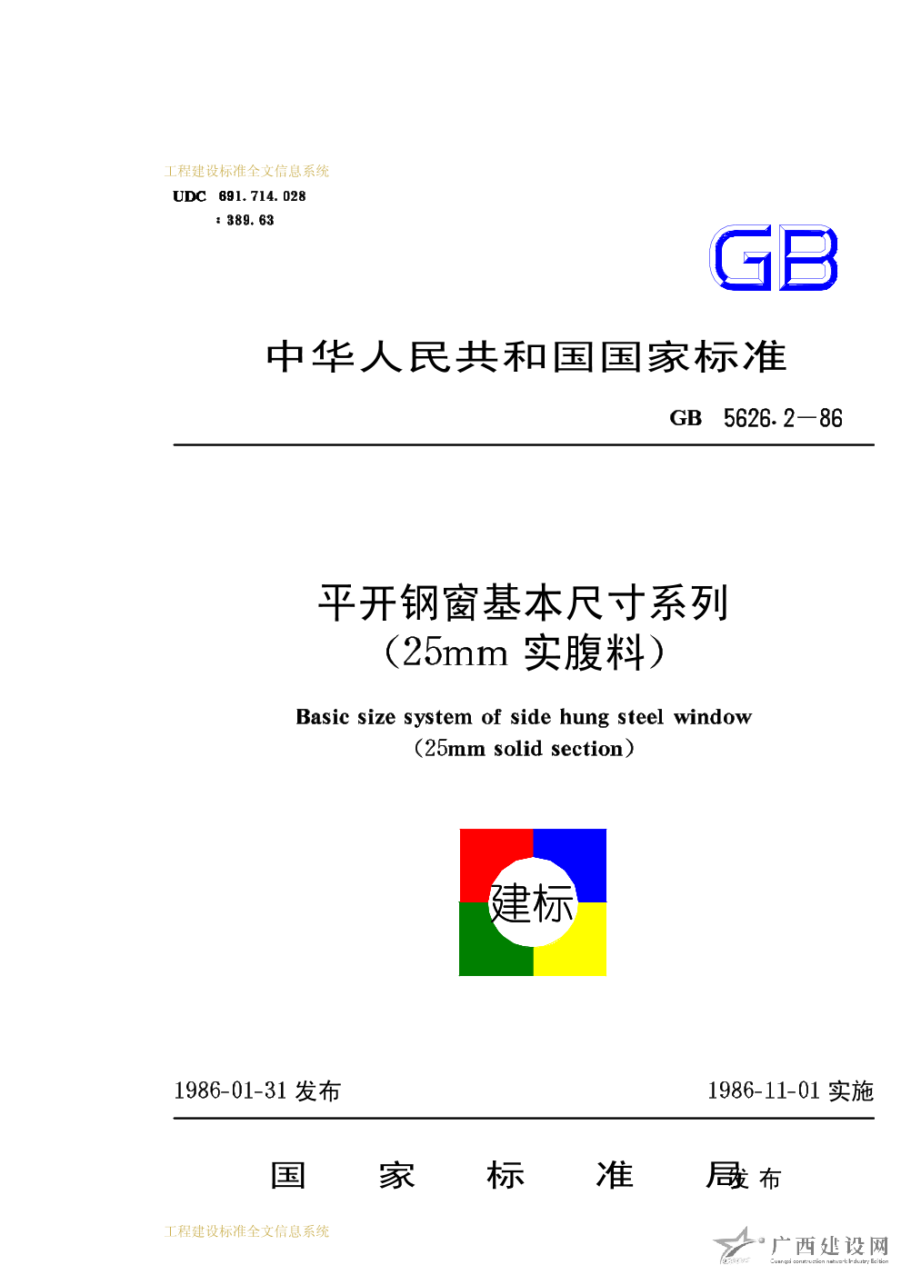 平開(kāi)鋼窗基本尺寸系列(25mm實(shí)腹料) GB5626.2-86