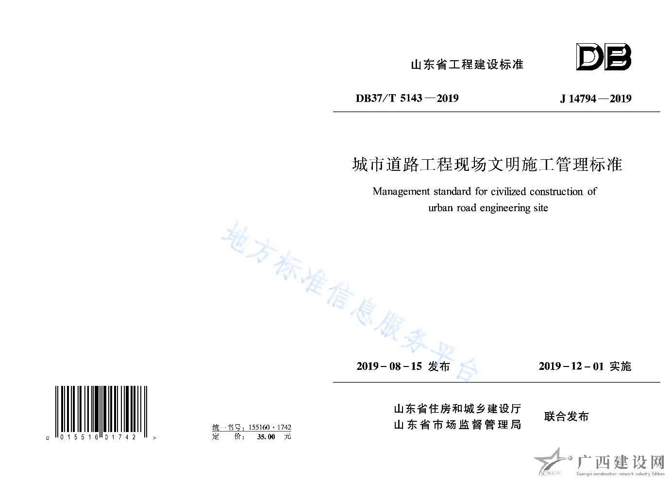 DB37T5143-2019FDIS城市道路工程現場文明施工管理標準(山東省市場監督管理局)
