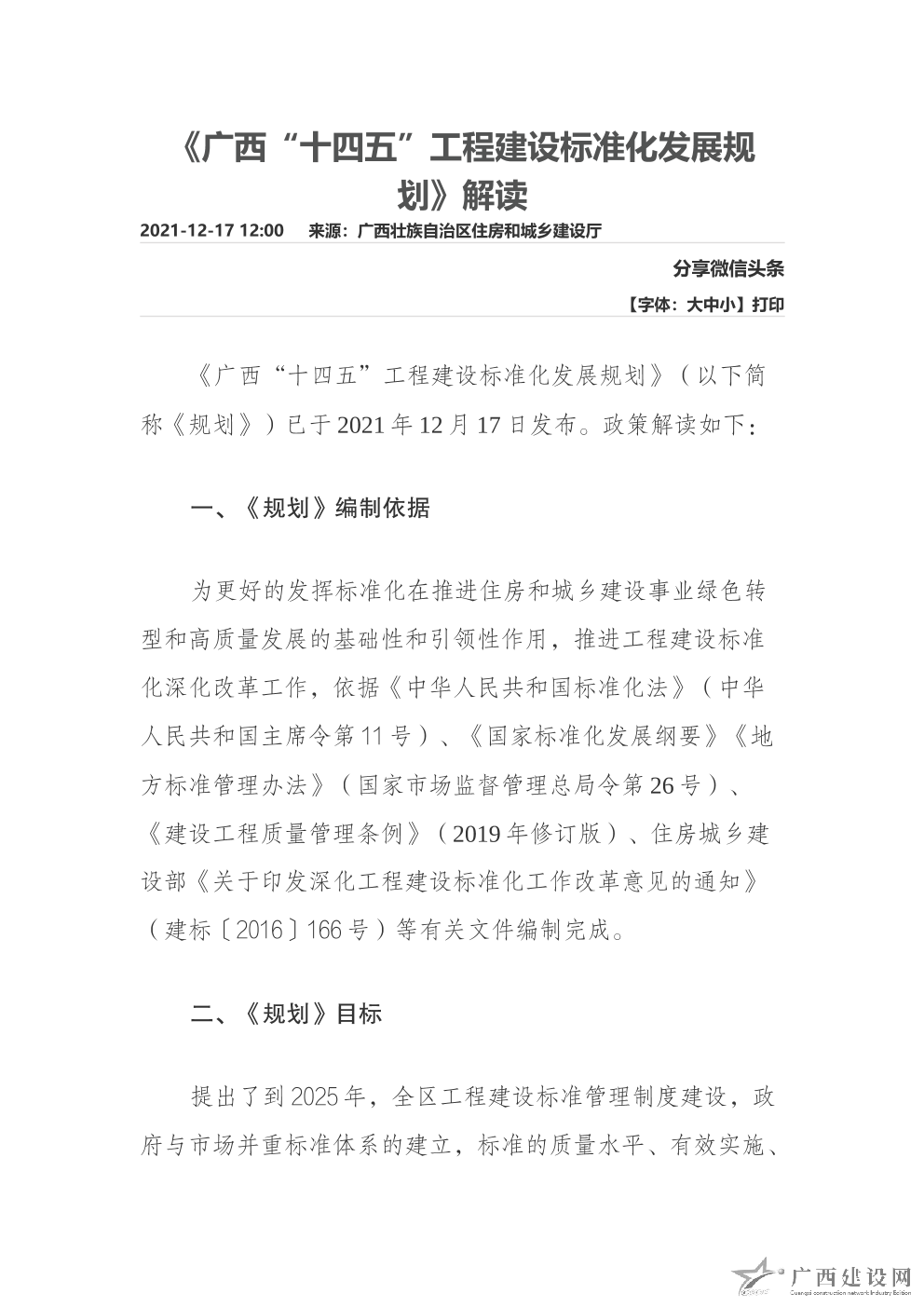 《廣西“十四五” 工程建設標準化發展規劃》