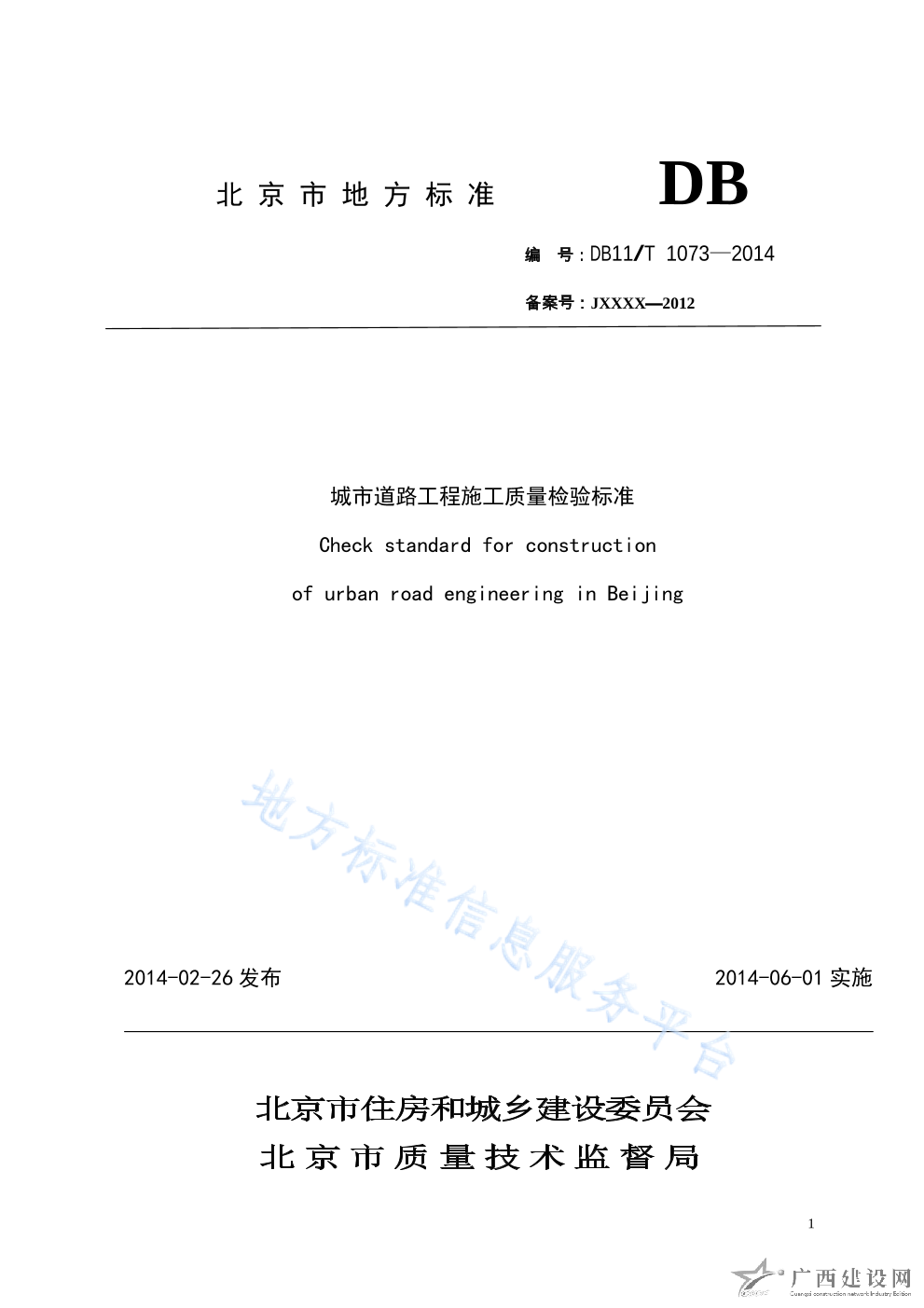 DB11 T_1073-2014城市道路工程施工質(zhì)量檢驗(yàn)標(biāo)準(zhǔn)