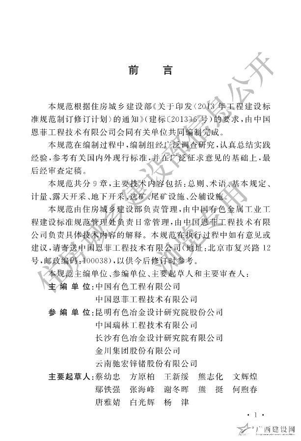GBT 50951-2013有色金屬礦山工程建設項目設計文件編制標準